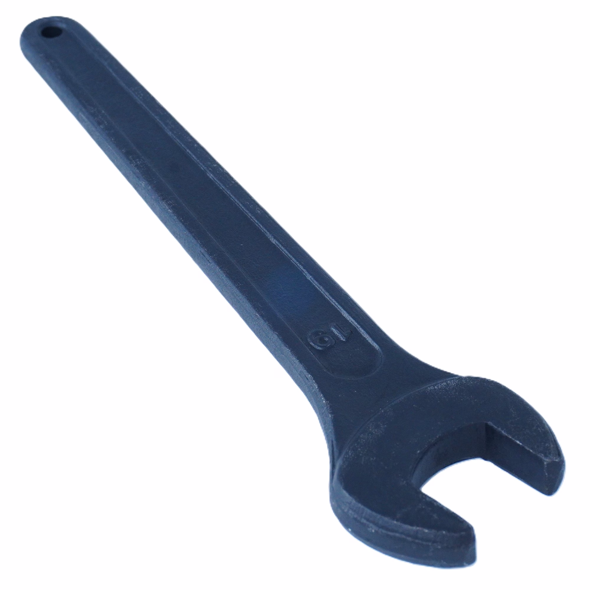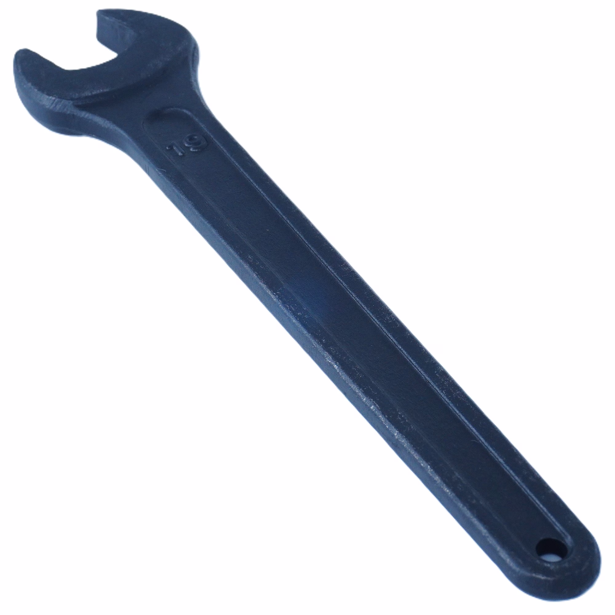 19 mm between flats. The open wrench fits hex nuts or tool holders with 19 mm flat to flat distance. Made out of hardened steel for long lasting use.