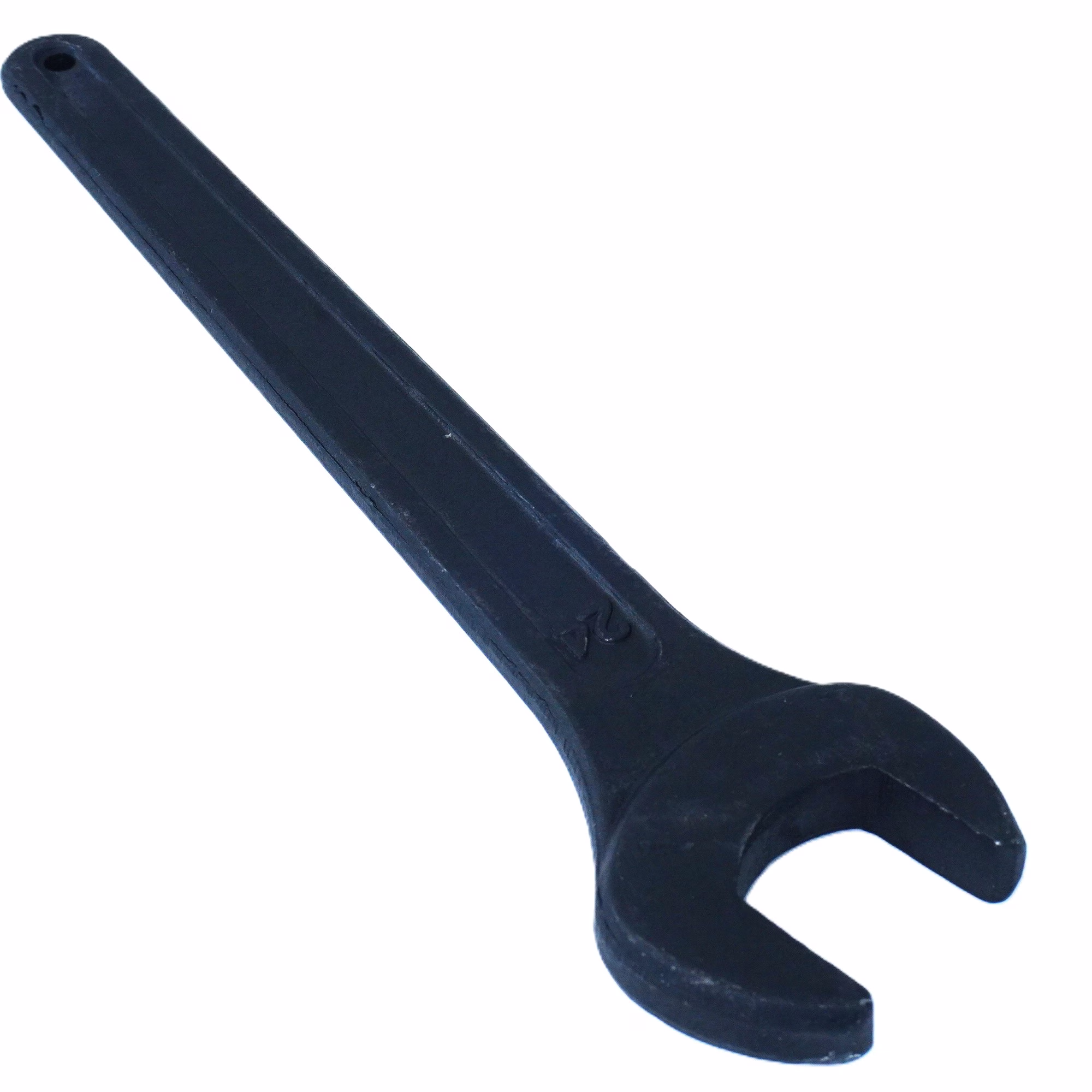 24 mm between flats. The open wrench fits hex nuts or tool holders with 24 mm flat to flat distance. Made out of hardened steel for long lasting use.