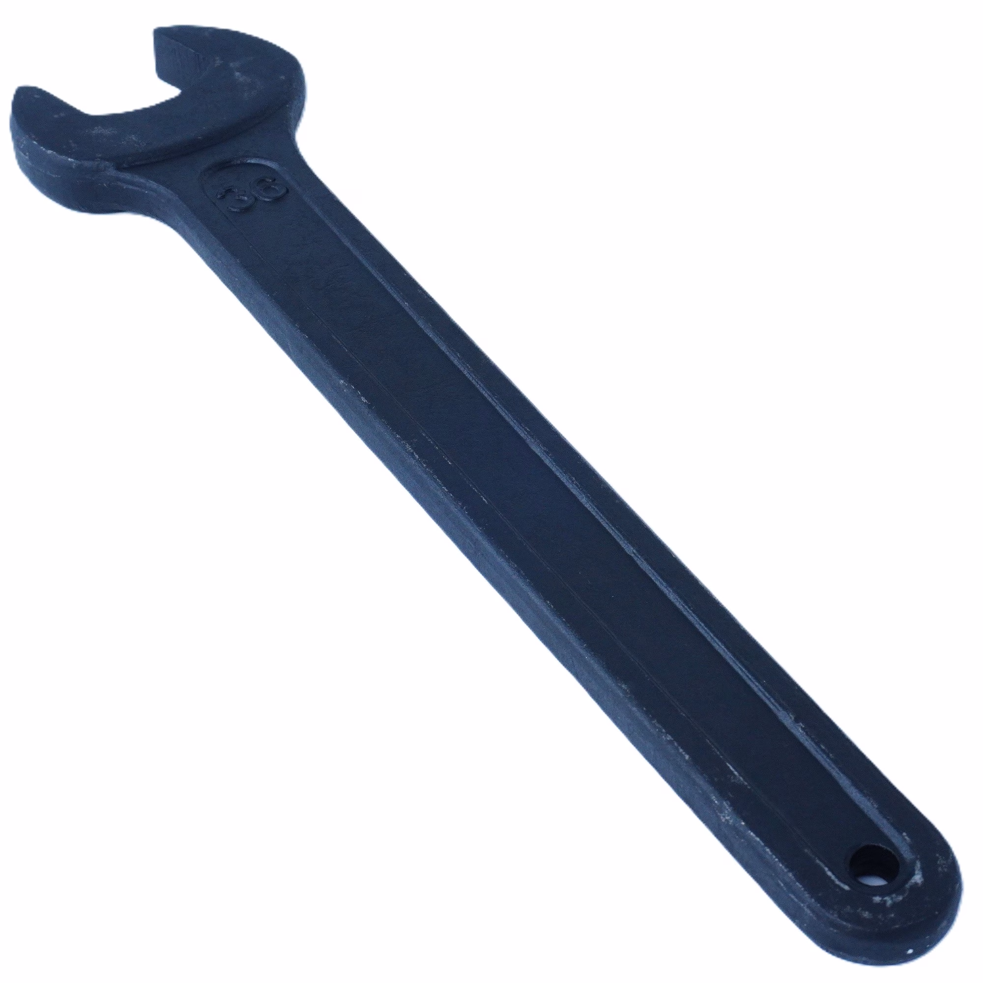 36 mm between flats. The open wrench fits hex nuts or tool holders with 36 mm flat to flat distance. Made out of hardened steel for long lasting use.