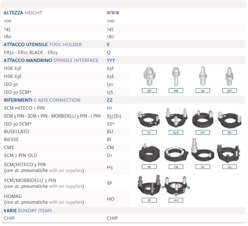 Available tool holders : ISO30, HSK 63F e HSK 63E
