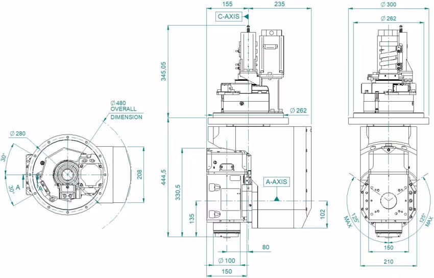 Rotation cylinder reduction from Ø630 to Ø480: It is possibile to move the C axis closer to the Z axis guides.