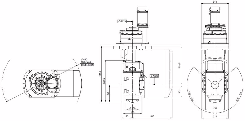 Maximum coverage of processing areas (Ø 630 mm overall dimension)