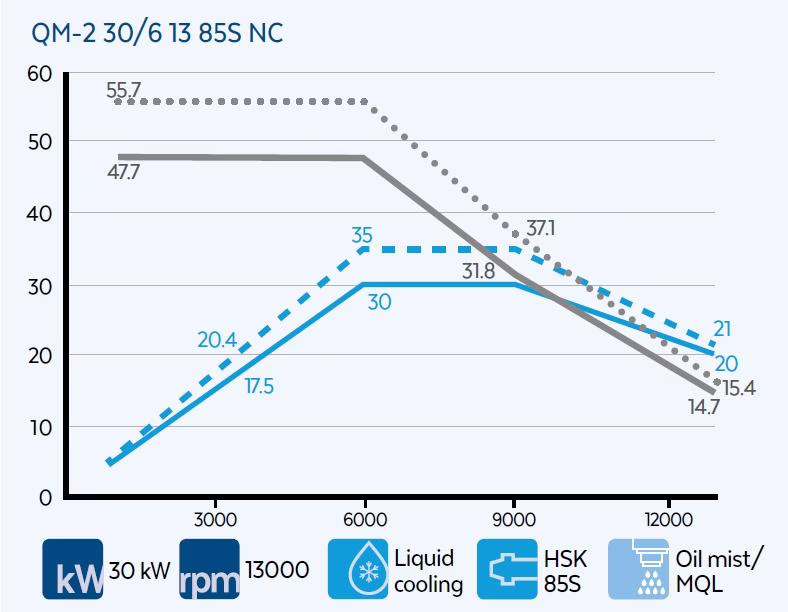 High power electrospindle fitted as standard (30 kW)