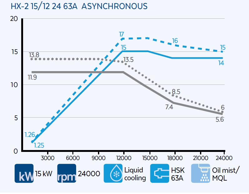 Electrospindles available with a wide range of power levels (up to 25 kW)